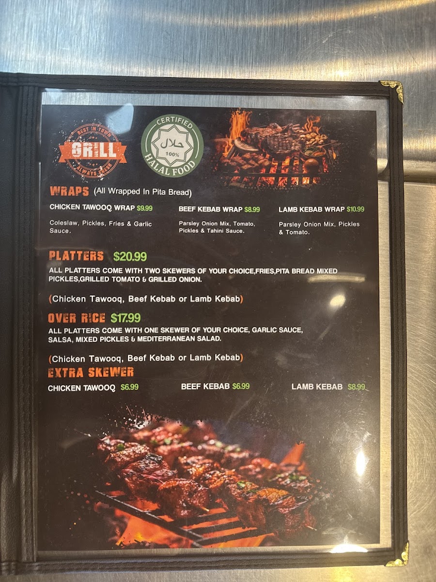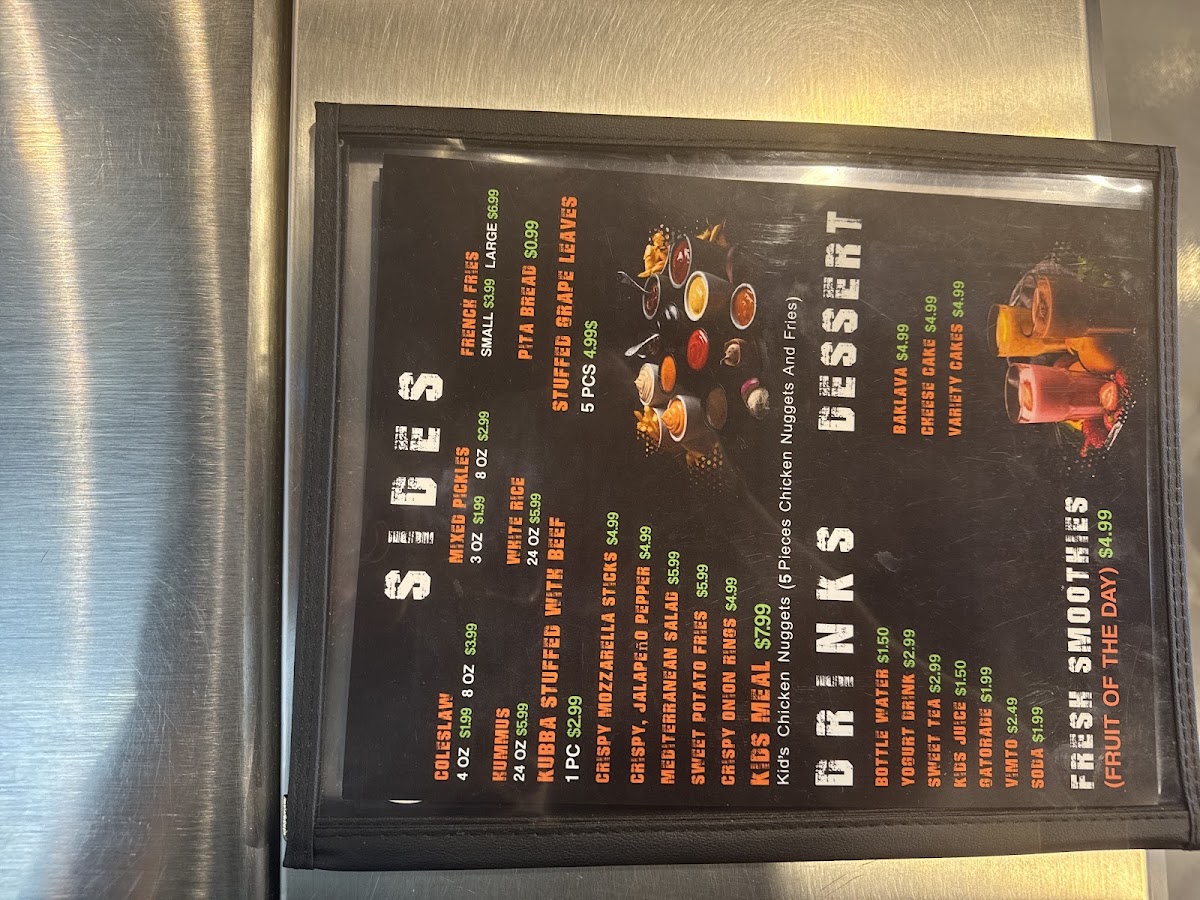 Many menu items are crafted to complement the easygoing atmosphere, making them suitable for lunch breaks, casual dinners, or sharing with friends. The wraps, wrapped in soft, warm bread and filled with tender, all-natural halal meats like chicken and beef, come with sides such as fries and garlic sauce, adding a satisfying touch to each meal. Plates with rice and skewers provide a heartier option when you’re in the mood for something more substantial.